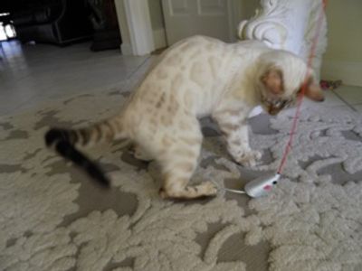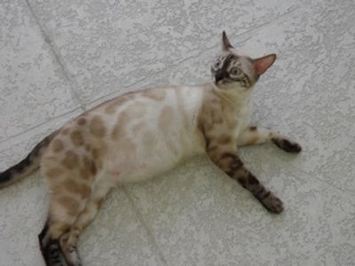 Mati is a remarkable seal lynx snow Bengal who is responsible for some of the best temperaments we have produced in our kittens. She is muscular, clear coated and has dramatic, large, rounded baby blue eyes. She has spots within her rosettes and the silkiest coat.